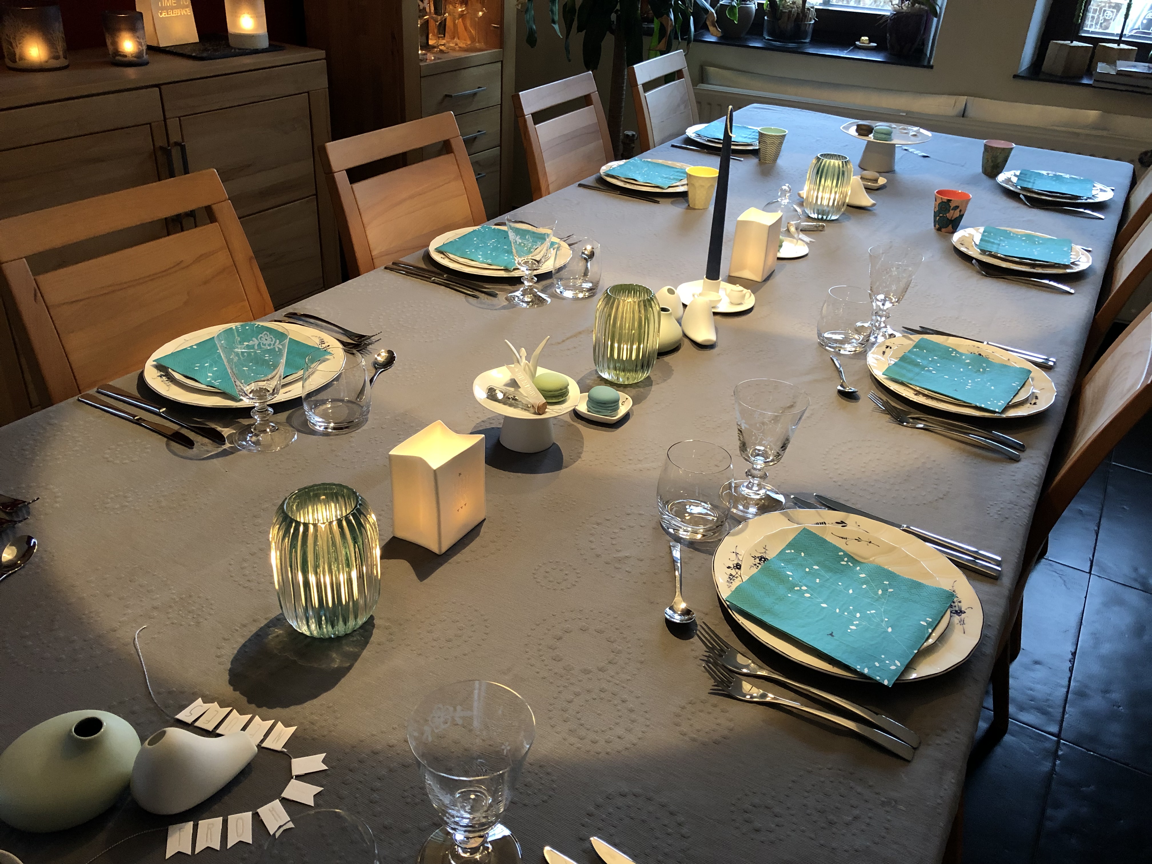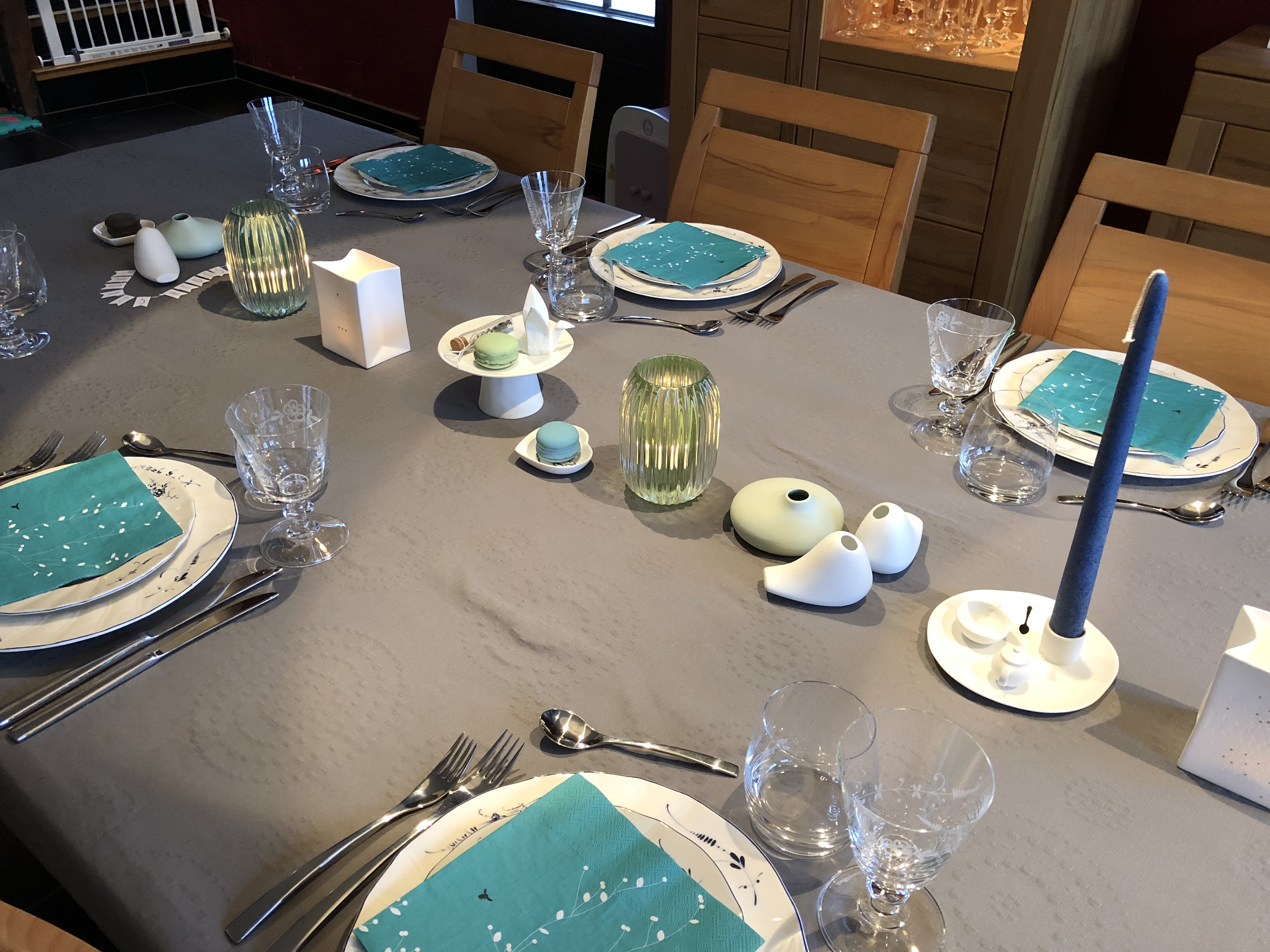 Hei eng weider Dëschdeko. Et ass net vill Opwand, einfach bëssen an de Schief wullen a verschidde Saache kombinéieren. Vill Spaass!